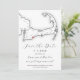 Sätt tonen för din bröllopsfest i Mashpee, MA med denna moderna svart-vita Save the Date med en elegant karta över Cape Cod på framsidan och ett anpassningsbart foto på baksidan. Perfekt för bröllop på Popponesset Inn, Willowbend eller New Seabury Country Club, denna design kombinerar stil med bekvämlighet och erbjuder gratis adressering av kuvert. Tillkännage din speciella dag med effortless kustcharm! Konstverk av Coastal Map Designs.