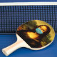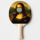 Mask till ansikte. Mona Lisa i karantän. Lustigt Pingisracket