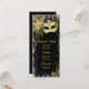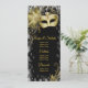 Maskeradfestmeny och program med vacker guldp maskeradmask på en snygg svart, guld och vit bokeh-bakgrund. Dessa maskeradfestmenyer eller program är lätta att anpassa med den text du väljer på framsidan och baksidan i den teckensnittsstil du föredrar.