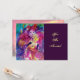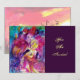 Färgrik venetiansk nattscen med uttrycksfull, romantisk karaktär: nyckfull violinist med fjäderprydd gnistrande rosa fuchsia-kostym och en rolig uggla i månsken, med en vacker gyllene röd ros på baksidan av kortet. Akvarellmålning i ljust rött, grönt, blått, gult, guldgnistrar, inspirerad av Piero (Pierrot), Commedia dell'arte och Karnevalen i Venedig. Det är ett vackert annonseringskort för semesterfirande, Mardi Gras-maskeradkostymfester, speciella tillfällen, barnkalas, 16-årsfirande, nyårsmaskeradbal, Alla hjärtans dag, årsdagar, sammankomster - nästan vilken händelse som helst du önskar!