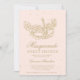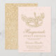 En modern, chic och glamorös sweet sixteen med en maskerad maskerad i hand plockade guld med glitter diamantstrålar i guld på en redigerbar rosa med glitter guld i baksidan.