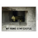 Ett kort med andra världskrigets maskin-pistol i en betongbunker. En tunna är utanför bunkens fönster