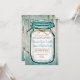 De här russinbröllopsinbjudningarna har en tealturkos akvablåfärgad mason burk med en garnbågdesign ovanpå en nedtryckt lingerbakgrund har flisat färg och en akvblått nyans på den. Tvillingbuggen och lingvirket är bara tryckta formar. Detta är en platt utskrift, med utskrift av fullt färg på båda sidor utan extra kostnad. På baksidan finns baksidan den invändiga lingvirvets bakgrund och en liten mason burk i hörnet med ord "Kärlek" i skript. Skriv din bröllopsinbjudan i mallpunkterna eller använda knappen "Anpassa det" för att flytta sak runt, ändra teckensnittet färg eller stil eller lägg till mer linjer text. Detta är utmärkta tillkännagivanden från landsbyggsbröllopet för par som gifta sig på en ladugård i bröllop eller på någon av land bröllop som kommer att dekoreras med Mason burk. Matching Mason stil och ladugårdskort för burk finns tillgängliga separat. Det skulle också vara trevligt för ett westernt bröllop. Rabattförsäljningspriser när du beställer mer än 50 inbjudningar.