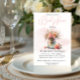 Inbjudningskort för möhippan har en mjuk, romantisk estetik med en vattenfärg-stil-bakgrund och en känslig bukett av rosa- och persikofärgade blommigtar som är placerade i ett mason-burk som är bundet med ett band. Utformningen blandar elegans med rustik charm, perfekt för ett hjärtligt firande. Textlayouten användor en fin blandning av typsnitt: en kursiv kurva för händelsens titel och honores namn, parad med klassiska serif-typsnitt för detaljerna, skapande en balanserad och förfinad visuell hierarki. Den övergripande sammansättningen känns varm, högtidlig och väl sammansatt.