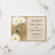 Rustic land temade spara datum meddelande. Med ett vackert foto av en glasmynning burk fylld med vita daisy på en brännvinsbakgrund. Vintage och romantik. Anpassa enkelt din händelseinformation.