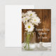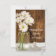 Skicka ett varmt tack och uppskattning för de gåvor som mottagits efter en avslappnad ranch stil förlovning party, möhippa eller giftermål med charmningen Mason Burk och White Daisy Land Bröllop Tackkort . Dessa informella och söt anpassningsbar-tackkort har ett digitalt färgfoto av en burk av glas som fylls med en bukett av vita blommar av blommor av daisy och en rustik vävt barrträ.