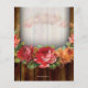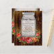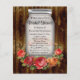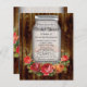 Utformning av möhippan med Mason burk och kransformad array av färgstarkt ro och blommor, på en bakgrundsbild av mörken brun vintage av plank. Ett orustiskt sommartema utomhus för en möhippa med land eller kabintema. Rik mörk bruna träskivor från ett antika staket eller golvtavlor kontrast mot vacker grafik för blommigt av söt. © CustomInvitesOnline.com