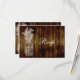 Svarskort för osa. Mason burk stämplade bilden i vitt, på en mörk av bakgrundsbild av brunträ (inte äkta trä). Ett halvgrungande utomhustema för en sommar eller bröllop i land. Den mörk chokladens bruna träplattor från ett antika staket eller golvtavlor kontrast mot en vit utpräglad konturbild av en mason burk med baby utandningsluft och andra lacy-vilda blommor. All design Copyright © www.CustomInvitesOnline.com