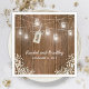 NAPKINS land CHIC BRÖLLOP | Rustik lada-bakgrund, töjfibermason burk ljus, en blommigt för babyutandningsluft, en märkre bunden med en knut med initialer och en enkel bröllop-mall.