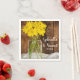 Den charmerande Mason Burk och Gult Daisy Land Barn Bröllop Pappra Napkins kan vara personlig med namnen av bruden och brudgummen och deras giftermål-ceremoniedag och användas vid er avslappnad än så länge på lantgården stil eller i bergsområdet möhippa eller party giftermål - och cocktail-mottagningen och cocktail. Dessa engångsblöjor av rustisk chic har ett digitalt färgfoto av en bukett av blommar av daisy av gult i burk med glasmason med en bakgrund av brunt lingträ.