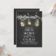 Rustic chalkboard mason burk och string ljus inbjudningskort för möhippa