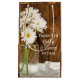 Anpassa och fyll dessa charmerande Mason Burk och White Daisy Bröllop Gift Bags med party favors eller gåvor till brudens sida, brudgummar eller marskalkar. Den här ranchtemat anpassningsbar rustik chic tack vare att du har påsar har en blommigt foto av en glaskonservburk i burk fylld med en bukett av vita daisy blommor blommar med bruna lingelträbakgrund.