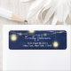 Navy Blue Night Himlar Guld Mason Burk på Sparkly String Ljus Return-adressetikett för en inbjudan till Födelsedagsfest, Möhippa, Bröllop eller Babydusch. Kontakta designern om du vill ha anpassade matchande objekt. Dessa babyskor, Möhippa, Bachelorette Party by Mail, Bröllop eller Delay the Date Returadress Lables är perfekt för den händelsen eller party som måste skjutas upp flyttat till ett nytt datum.