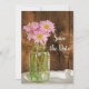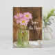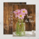 Ange tonen för dina kommande informella och elegant-upphöjningar med charming Mason Burk och Rosa Daisys Landsbyggsbröllop Spara datum meddelande. I den här avslappnaden finns det ännu ett anpassningsbar ranchtema i klassrummen bröllop behålla med datumangivelsen ett höggradigt fotografi av en glaskonservering burk med rosa daisy blommor blommigtar och en rustik vävlat barrsäng. Perfekt för en ceremoni och ett mottagningsevenemang vid gården stil lada party giftermål.