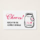 Mycket charmerande bröllop dricker biljett med en mason burk med ett rosa hjärta på märkrn. Svart, vit och rosa. Två plågade typsnitt: ett standardskript, ett skript.