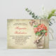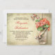 Unik utformning av rustik åldras inbjudningskort för möhippa. Koral färg-vild blommor mynning burk med band och fjärilar av elegant och gammaldags brännbakgrund. Jag föreslår "Linen" eller "Felt"-pappra för den här utformningen.