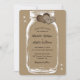 Rustic bröllopsinbjudan med en mason burk och burlap-hjärtan på en faux kraft-papper bakgrund. Anpassa enkelt den här bröllopsinbjudan till Mason burk med dina bröllop-uppgifter.