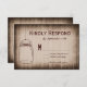 Ett kort för svar på landsbyggsbröllopet på en bakgrund av eldsödda lada med en hängmason burk. Fullständigt anpassade med dina egna uppgifter. Baksidan av inbjudan har "OSA". Underbar för landsbyggsbröllop och bröllop.