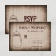 Ett kort för svar på landsbyggsbröllopet på en bakgrund av eldsödda lada med en hängmason burk. Fullständigt anpassade med dina egna uppgifter. Baksidan av inbjudan har "OSA". Underbar för landsbyggsbröllop och bröllop.