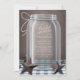 Rustic och vacker sydlig land inbjudningskort för möhippa med ett exempel på en mason burk med tvilling bunden runt nacke, rustic Texas-stjärnor som lägger till vid burk, en vit och blå gingham bord, över en vintage brun bakgrund. På baksidan av dessa inbjudningar finns möjligheten att även ha registeruppgifter eller andra uppgifter över ett vitt och blått gingham mönster.