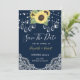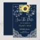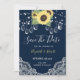 Rustic mason burk, snöre, solros och sträng ljus på marin blå bakgrund. Spara det datum som kan anpassas med ditt namn på ett bra sätt. Klicka på knappen "anpassa" om du vill ändra teckensnittet stil, färg och storlekt.