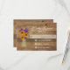 Rustic Barn Wood Landsbyggsbröllop OSA kort med en nedslagen baksida av antika lingor och en mynning burk med solblommor och mörk lila blommor. Svarskorten från bröllop är underbar för det orusliga landsbyggsbröllopet och bröllop från ladan.