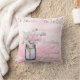 Bröllop Pillow - Vintage blue mason burk bundet med en jute twine och en bouquet sötärtblommor i pastellskuggor av grädde och rosa placerade framför en rosa vattenfärgsbakgrund som är målad. © 2015 Originalfärgning av vattenfärg efter WhimsicalArtwork™ Perfekt för det landsbyggsbröllopet eller vintagen party.