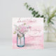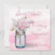 Vintage blue mason burk bunden med en jute twine och en bukett av söta ärtor i pastellskuggor av grädde och rosa placerad framför en rosa vattenfärgsbakgrund med målad bakgrund. © 2015 Originalfärgning av vattenfärg efter WhimsicalArtwork™ Perfekt för det landsbyggsbröllopet eller vintagen party.