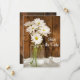 Meddela datumet för ert kommande firande i stil med den rustiska chicen personligen Mason Burk och White Daisy Sweet 16 Spara datum meddelande. Anpassa den med namn i den sexton år gamla födelsedagsflickan och party-dejten. Den här avslappnaden har ännu en sweet sixteen för temat behålla för ranch i klass anpassningsbar. Datakortet innehåller ett digitalt utökat fotografi av blommigten av en glaskonservering burk fylld med blommar för vit daisy blomma och en brunfärgad bakgrund av barrträ. Inspektion av perfekt för en informell gård eller ett informellt party-lada.