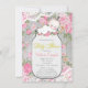 Bedårande flickor vintage rose mason jar med rosa blommor och spetsig baby shower inbjudan. Denna söta flicka mason jar baby shower inbjudan är lätt att anpassa för ditt evenemang genom att lägga till dina detaljer i typsnittsstil och färg, samt formulering efter eget val.