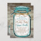 Rustika Landsbygdsmason Jar Inbjudningar Till Sängkammarparty Med En Turkos Accentuering På En Utskriven Träbakgrund I Ladan. Lägg Till Din Egen Text I Denna Anpassade Mall.