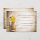 vackra rustika bröllop RSVP - bröllopsvarskort med slitna träd bakgrund och masonburk med gula och vita blommor . Jag föreslår ett Linnepappret för denna design.