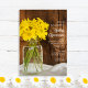 Bjud in gäster till din kommande 15-årsdag med den charmiga Mason Jar och gula tusenskönor Country Quinceañera-inbjudan. Personalisera den med namnet på den femtonåriga födelsedagsflickan och specifika detaljer om din rustika födelsedagsfest. Denna avslappnade men ändå klassiska anpassade ranch-tema quinceanera-fest inbjudan har ett pittoreskt blomfoton av en glasburk fylld med gula tusenskönor och en brun väderbiten lada träbakgrund. Tillgänglig som ett tryckt inbjudningskort för postning eller som en digital nedladdning för enkel delning online. Perfekt inspiration eller idé för en avslappnad lantlig lada fest.