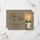 Masonburk Spara datum: Perfekt för en landsbygdshustru eller kanske du bara älskar Masonburkar! Gammal vintage Masonburk med nyanser av Crème, Lax / Korall och Mörk Lime / Gulgrön vilda blommor. En mörk burlapbakgrund är inställd. Om du har några frågor om denna design eller vill ha en färgförändring, vänligen mejla mig paula@labellarue.com VÄLJ DITT PAPPERVAL: Detta är inställt för att skrivas ut på Basic, men du kan välja en alternativ kartong.