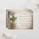 vackra rustika bröllopsinbjudningar med slitna trädgårdsbakgrund och masonburk med vita blommor . Jag föreslår ett vackert linnepapper för denna design.