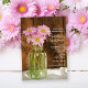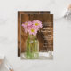 Bjud in gästerna till er kommande avslappnade men ändå klassiska bröllopsfest med den charmiga Masonburk och Rosa Margariter Country Bröllopsinbjudan. Denna informella men ändå eleganta anpassade rustika bröllopsinbjudan har en pittoresk blommotivfotografi av en glasburk fylld med rosa margariter i blomning med en väderbiten brun lada trähydd background. Perfekt inspiration för en avspänd gård eller ranch stil lada bröllops ceremoni och mottagningsfest.