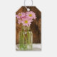 Tacka era gäster för att de var en del av er speciella dag när ni fäster den charmiga presentkortet Mason Jar och Pink Daisies Country Wedding Favor Tag på deras present eller lilla tacksamhetsgåva. Dessa avslappnade men ändå eleganta personliga ranch-tema presentkort har ett pittoreskt fotografi av en glascanningburk fylld med rosa tusenskönas blomblommor och en brun väderbiten lada träbakgrund. De gör ett perfekt tillägg till en avslappnad men ändå elegant rustik lantgårdsstil, ladfest eller västerländsk bröllopstema.