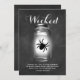 En kuslig infångad spindel på en svart tavla-bakgrund pryder denna Halloween-inbjudan. Scrolla ned för att se kompletterande artiklar.