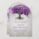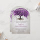 Masonburk Strålande Lila Hjärtblad Eldflugor Hjärtblad Träd Under Stjärnorna Bröllopsinbjudningar. Perfekt för lila och silver rustika lyxiga skogsbröllop.