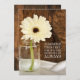 Sätt en avslappnad men ändå elegant ton för din kommande lantliga bröllopsfest med det vackra murarskål- och vitprästkrage-lantbröllopet "Spara datum"-korten. Detta charmiga, specialdesignade ranch-tema-bröllop "Spara datum"-kort har ett pittoreskt, digitalt förbättrat blomfoto av ett par glas-inlaggningsburkar fyllda med en vit prästkrage-blomma och en rustik, brun, väderbiten lada-träbakgrund. Perfekt inspiration för din informella lada-fest bröllopsmottagning.