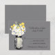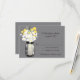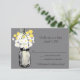 Svarskort - Perfekt för en landsbygdbröllop eller kanske du bara älskar Masonburkar! Masonburk som hänger i en krok fylld med vilda blommor. En GRÅ bakgrund med den hängande Masonburken med gula Billy Balls och vilda vita tusenskönor. Om du har några frågor om denna design eller vill ha en färgändring, vänligen maila mig paula@labellarue.com Kolla också efter HUVUDINBJUDAN, MOTTAGNING och GÄSTPLACERING kort för att matcha!