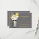 Matchande RSVP-kort perfekt för en landsbygd bröllop eller kanske du bara älskar Masonburkar! Masonburk som hänger på en krok fylld med lantliga vilda blommor. En skiffergrå bakgrund mot den hängande Masonburken och vilda blommor i gula och vita prästkragar. Om du har några frågor om denna design eller vill ha en färgändring, vänligen maila mig paula@labellarue.com Kolla också in RSVP-, RECEPTION- och GÄSTPLACERINGS-korten för att matcha!
