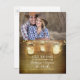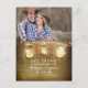 Rustik lada träbakgrundstextur spara datum vykort med hängande ljus masonburkar och ditt foto