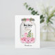 Ett lärare tack-kort med en masonkruka med rosa blommor och en burlapslinga på locket. Det står "Lärare inspirerar oss att blomstra" med ordet blomstra i en guldglittrig design. Observera att det inte finns någon verklig glitter på denna produkt.