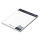 5,5 x 6 tum vitt anteckningsblock med en bild högst upp på lila snöre över svart. Vid grund-högerna finns en bild av lila snöre över svart, en vacker mask med rosett band av blått, guld, grönt, lila och fuchsia med gnistrande silver trim. Valfri text. Se hela samlingen med Anteckningsblocket Mardi Gras i SPECIELLA TUUCHES | Avsnittet Party favors.
