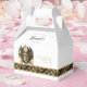 Gör din händelse oförglömlig med den här exekverande förmånslådedesignen. Lägg dig i den fantastiska värld av maskerad motiv och harlequin mönster, med en häpnadsväckande svart palett och guld färg. Perfekt för Sweet 16 firande, varje låda kan vara personlig med namn och elegant tack till dina gäster. Uttrycklig tacksamhet i stil och sofistikering - för deras närvaro förtjänar all uppskattning. Sök i ID1032 för att se andra produkter och färg för den här designen.