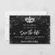 Ett giftigt och trendig Spara datumkortet för en 50:e (eller någon annan ålder) födelsedagskalkylen i maskerad party. En klassisk svart bakgrund som dekoreras med faux silver-gnistor och en maskerad mask. Anpassa och lägg till datum och namn/ålder. Texten: Spara datumet skrivs med ett stort trendig-handskript i stil.