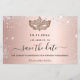 A Spara datumkortet för en 50:e (eller någon annan ålder) födelsedagskalkylen party. En ro guld-bakgrund som dekoreras med faux silver-gnistor och en maskerad mask. Anpassa och lägg till datum och namn/ålder. Texten: Spara datumet skrivs med ett stort trendig-handskript i stil med dekortecken.