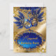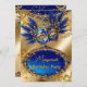 Masquerade birthday Party Gold Blue Mask Feathers Inbjudningar