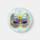 En fängslande maskerad maskerad som lagts till med hårda gyllene präglingar mot en känslig texturerad bakgrund. Utformningen av prydnadsföremål som snurrar mönster accentueras med juveler och en central gyllene vapensköld som skapar en luft av opulens och mysterium. Öga-öppningarna markeras med fet röd accent, vilket ger en slående kontrast.